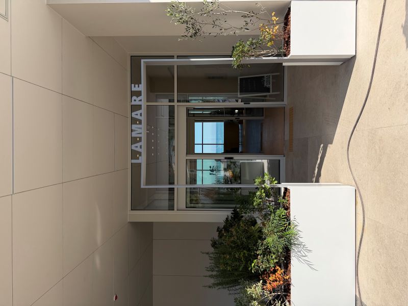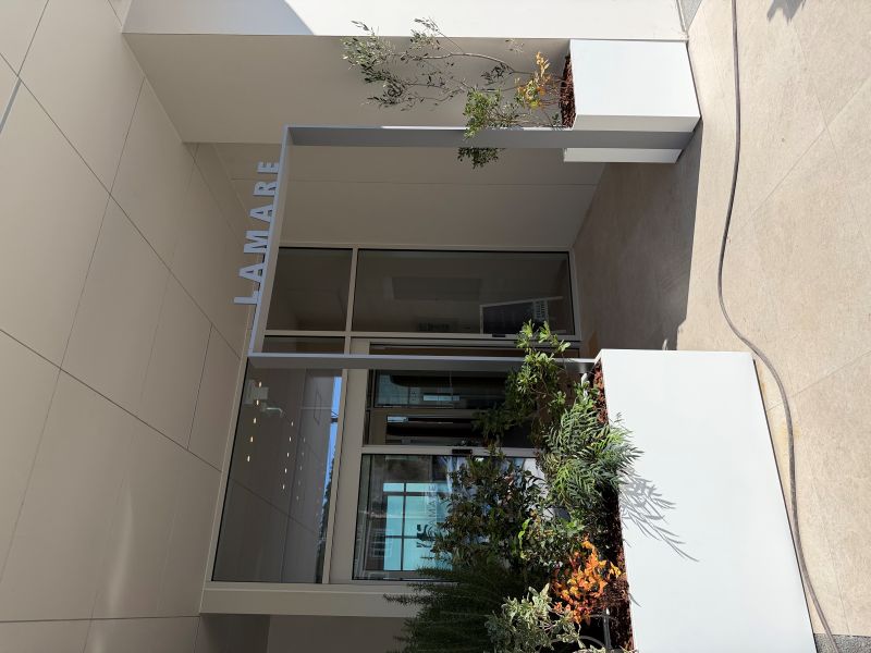 부산에 위치한 빌딩 현관에 로고가 부착된 철제게이트를 제작하였습니다.