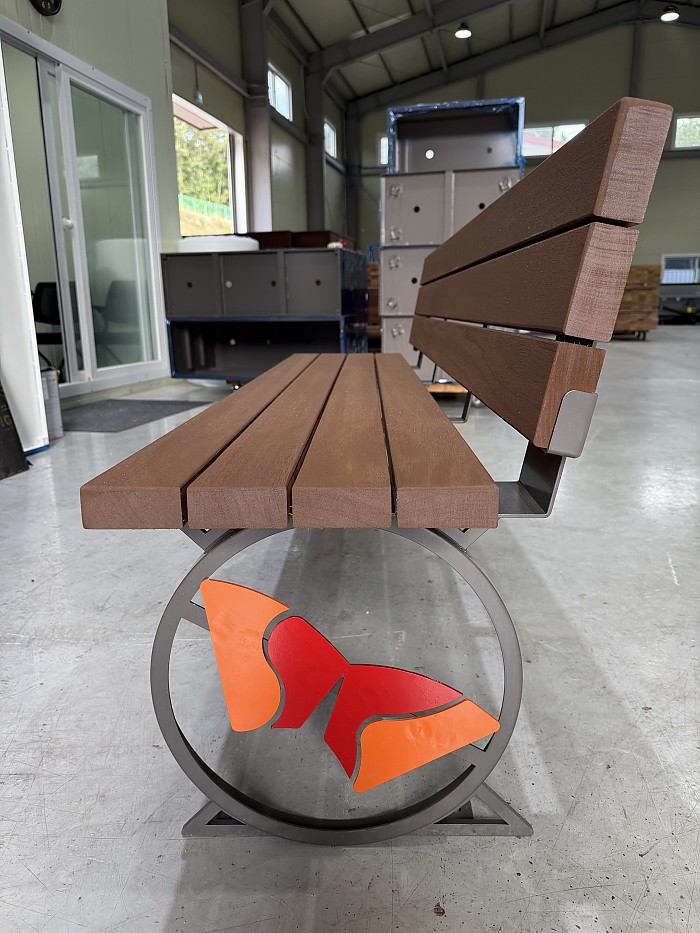 하이닉스의 로고로 디자인된 등벤치입니다.