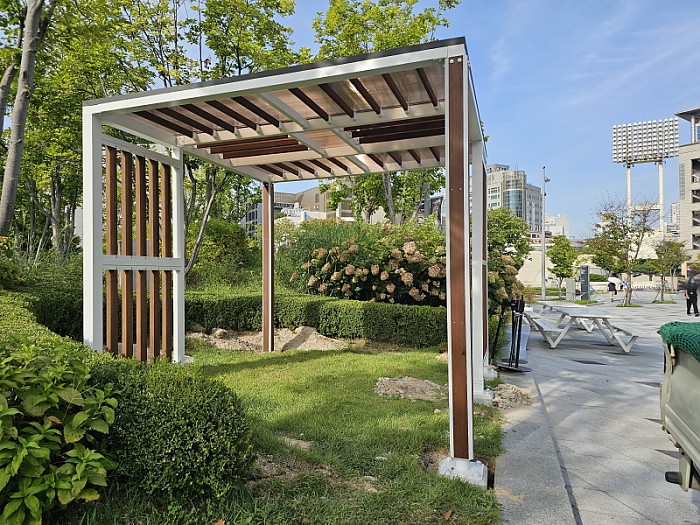 분체도장 마감된 철제프레임에 하드우드 목재로 디자인된 플랜트박스입니다.