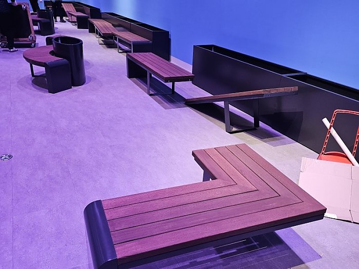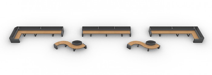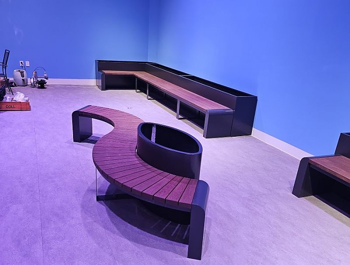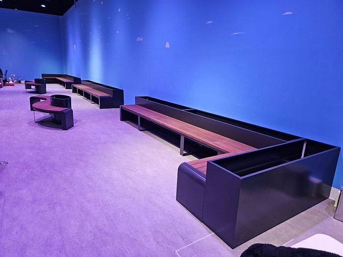 공간에 맞게 디자인된 사각벤치형플랜트와 곡선연식벤치,