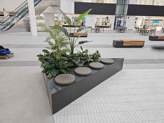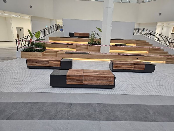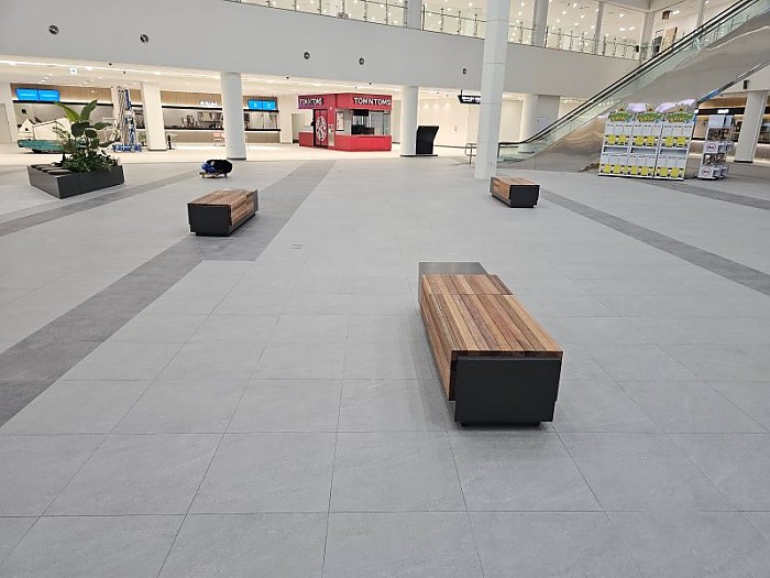 사각형 모양의 하드우드목재(30*60)으로 제작된 디자인철제벤치입니다.